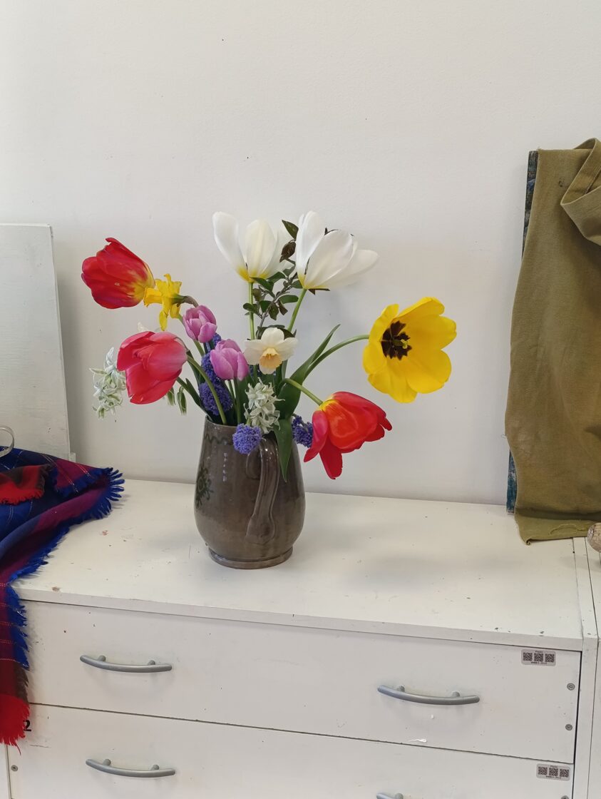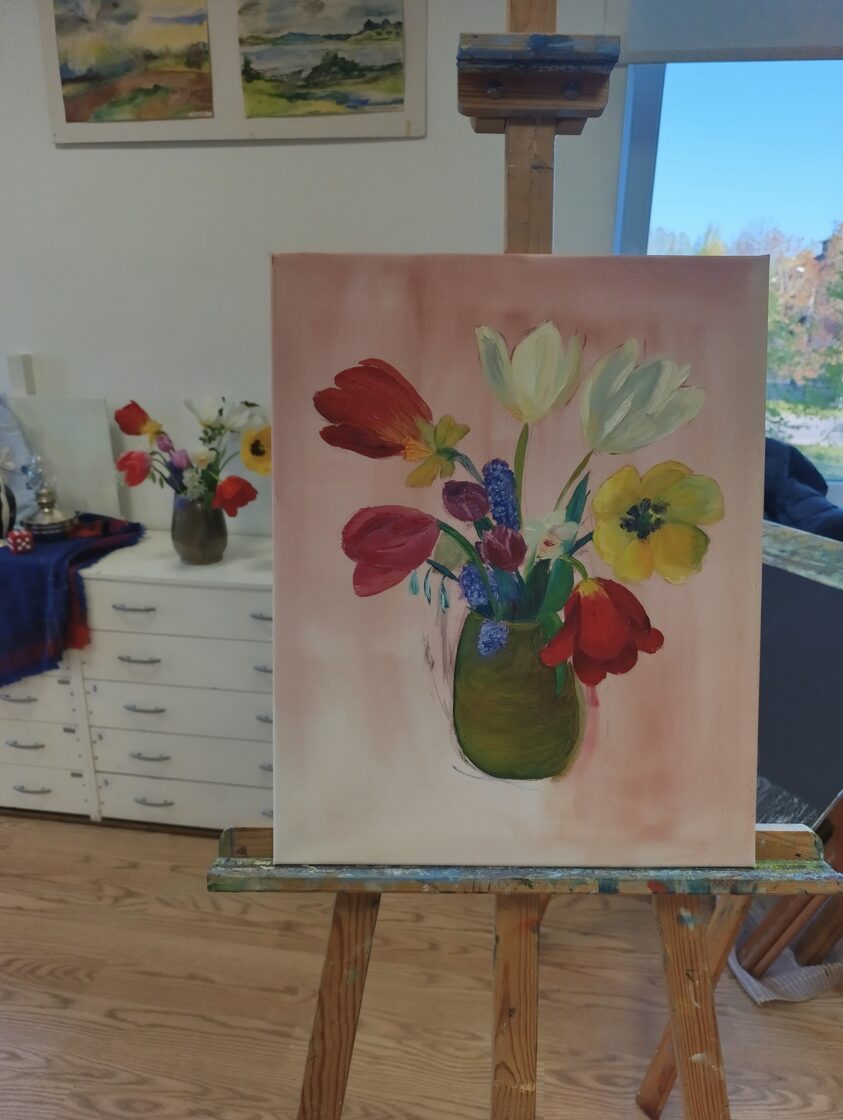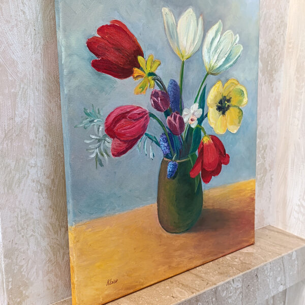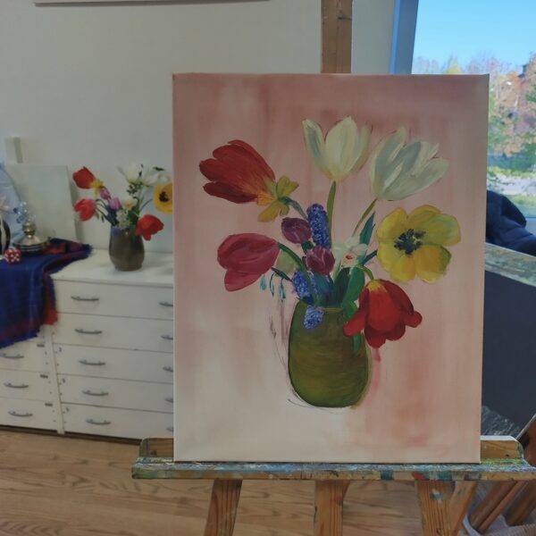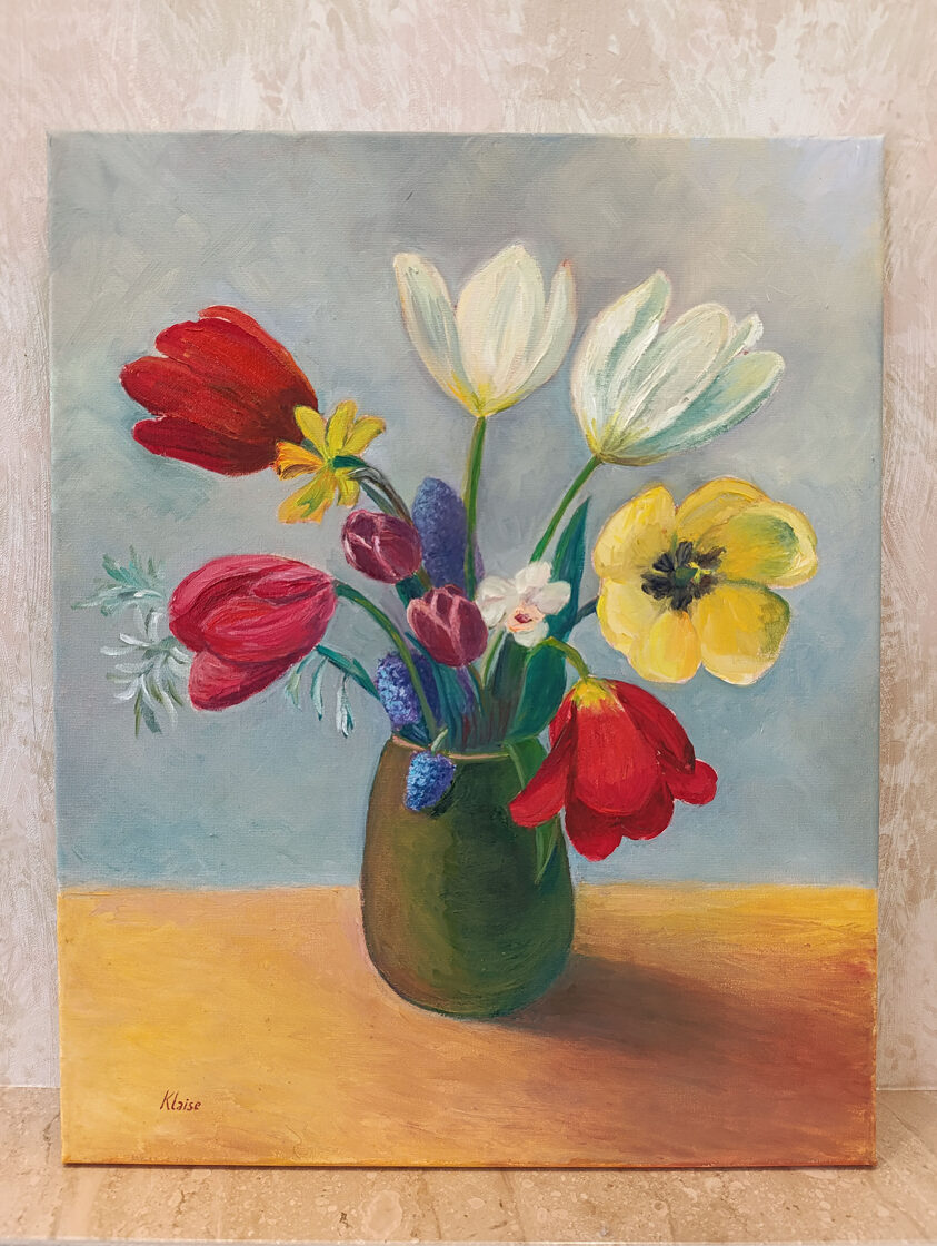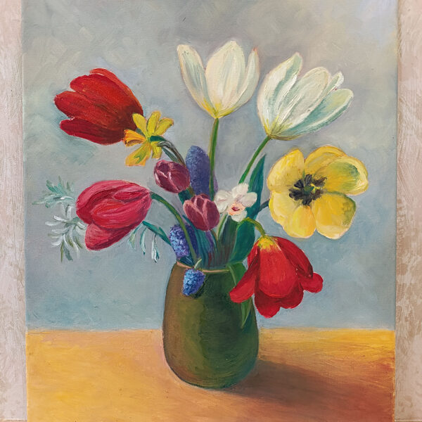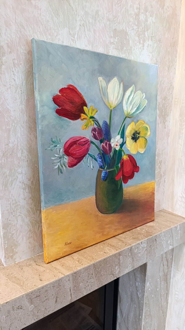 Tulip painting, Floral art, Spring flowers, Flower painting, Botanical art, Colorful tulips, Vibrant flowers, Bright floral art, Joyful painting, Optimistic art, Spring colors, Contemporary floral, Nature art, Still life flowers