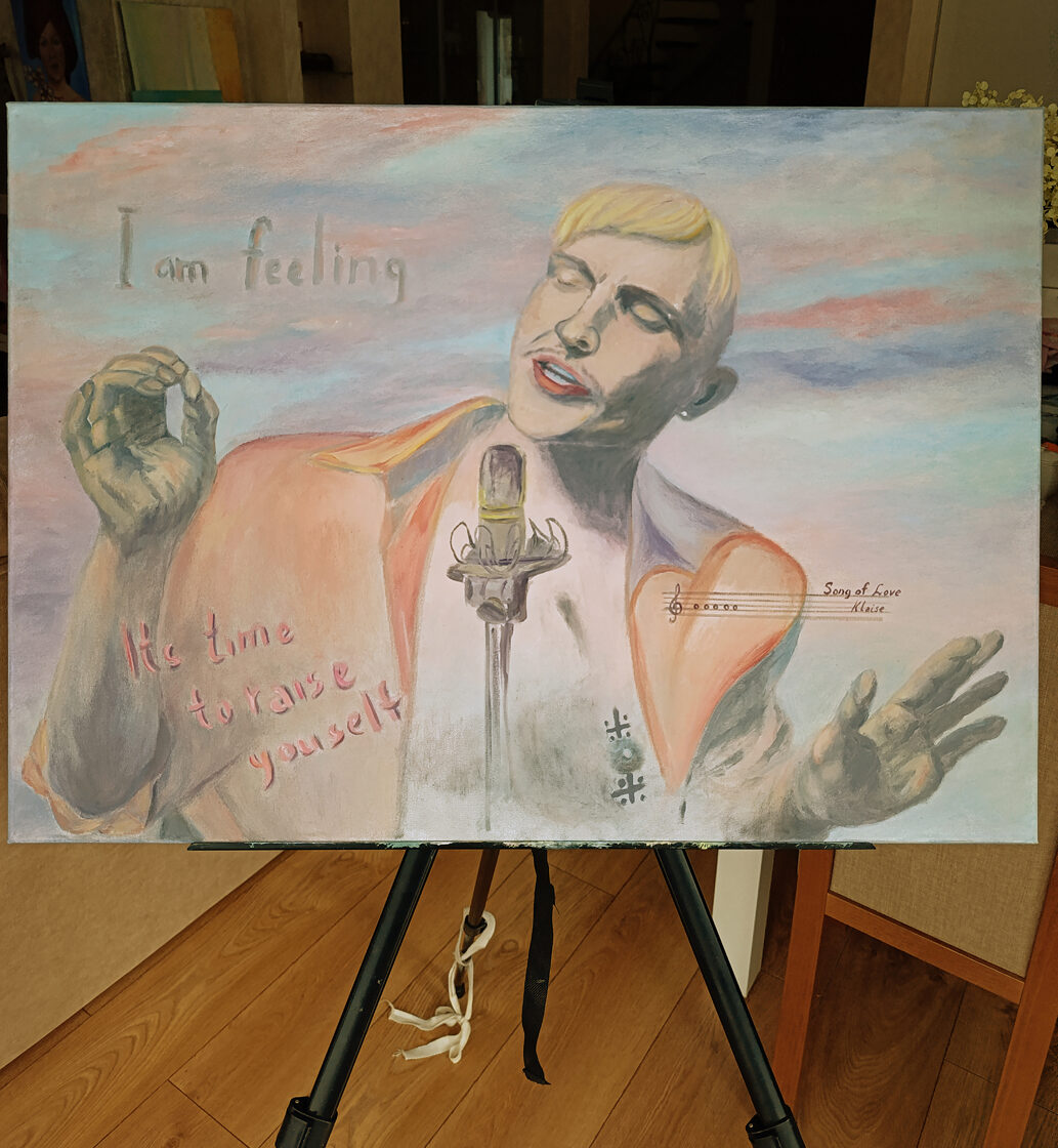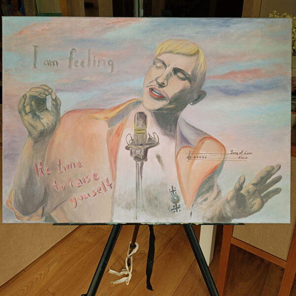 BACKoil painting, man, artist, Ivo Dimchev, raise me, song of love, artist life